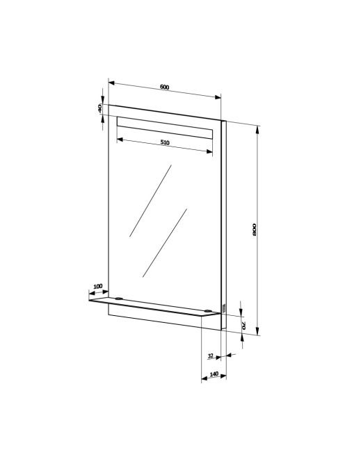Aqualine tükör LED 60x80 világítással üvegpolccal, billenő k