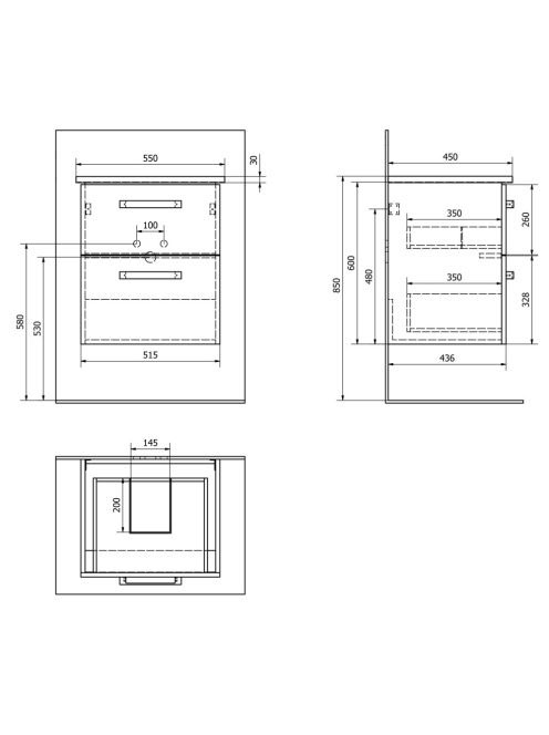 Aqualine Vega 2 fiókos mosdótartó szekrény 51,5x60x43,6 cm,
