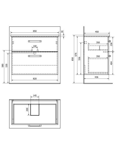 Aqualine Vega 2 fiókos mosdótartó szekrény 82x67,6x43,6 cm,
