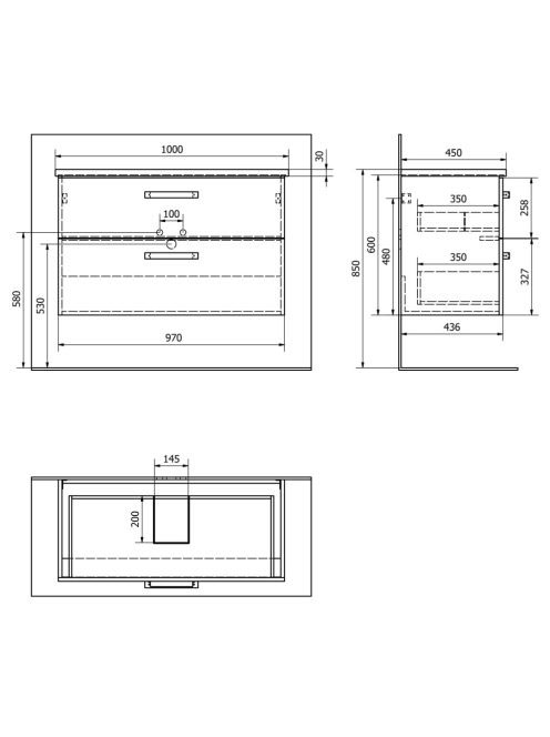 Aqualine Vega 2 fiókos mosdótartó szekrény 97x60x43,6 cm, fe