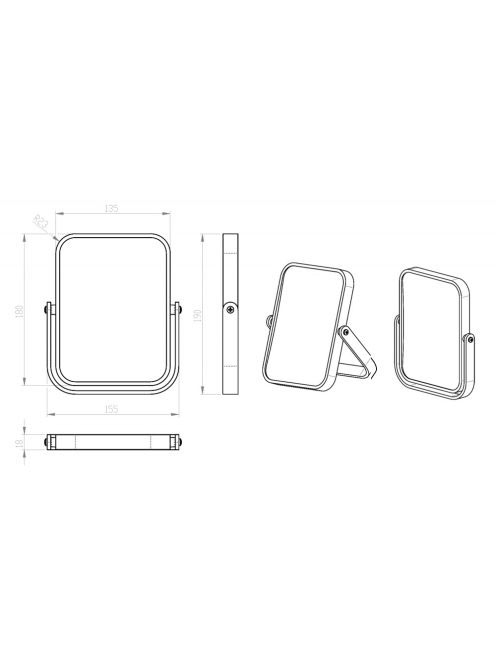 Aqualine White Line Elena kétoldalas kozmetikai tükör 5x-ös