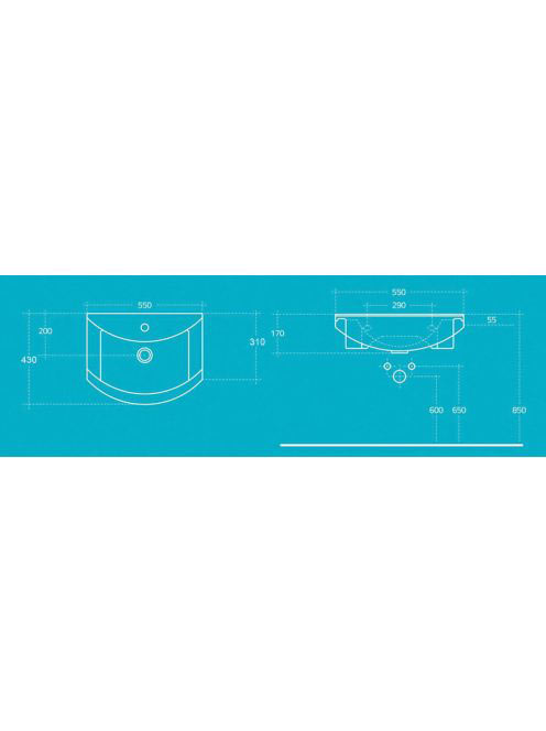 Aqualine Zero kerámia mosdó 55x43,5 cm, fehér 6055 - FürdőszAqualine Zero kerámia mosdó 55x43,5 cm, fehér 6055 - Fürdősz
