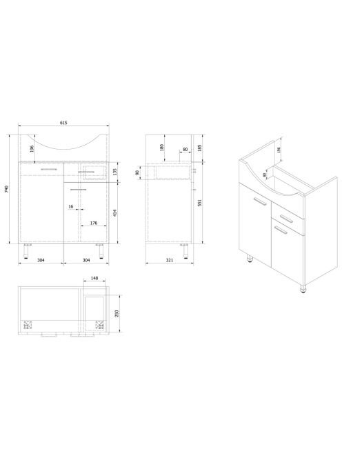 Aqualine Zoja 2 ajtós mosdószekrény fiókkal 61,5x74x32,1 cmAqualine Zoja 2 ajtós mosdószekrény fiókkal 61,5x74x32,1 cm