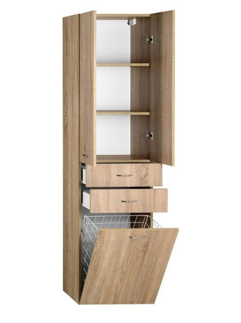 Aqualine Zoja állószekrény fiókkal és szennyeskosárral 50x184x29 cm platina tölgy 51295