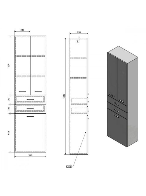 Aqualine Zoja állószekrény fiókkal és szennyeskosárral 50x18Aqualine Zoja állószekrény fiókkal és szennyeskosárral 50x18