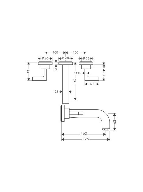 Axor Citterio 3-lyukú mosdócsaptelep falsík alatti szereléshez, 162 mm-es kifolyóval 39315000