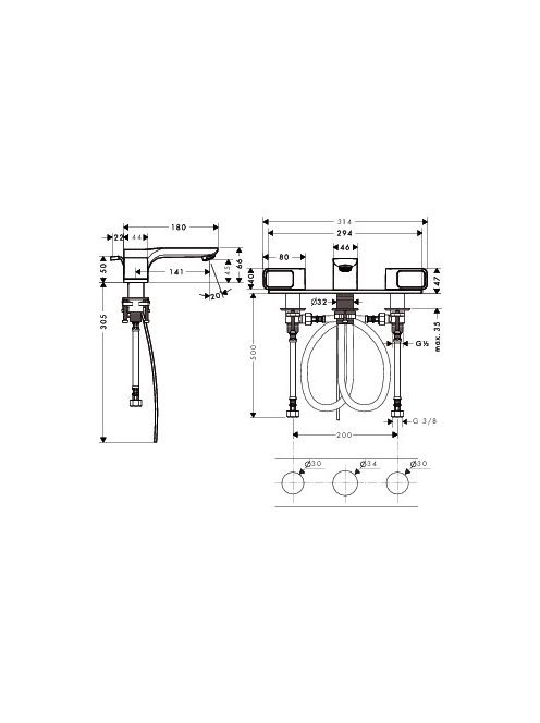 Axor Urquiola 3-lyukú mosdócsaptelep dekorlappal 11040000 -