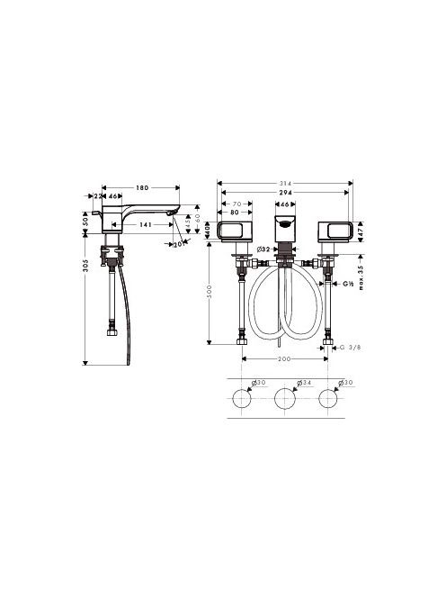 Axor Urquiola 3-lyukú mosdócsaptelep takarórozettákkal 11041000