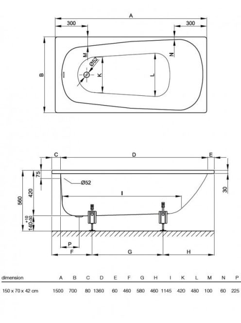 BetteForm zománcozott titánacél fürdőkád, fehér 150x70 2941-