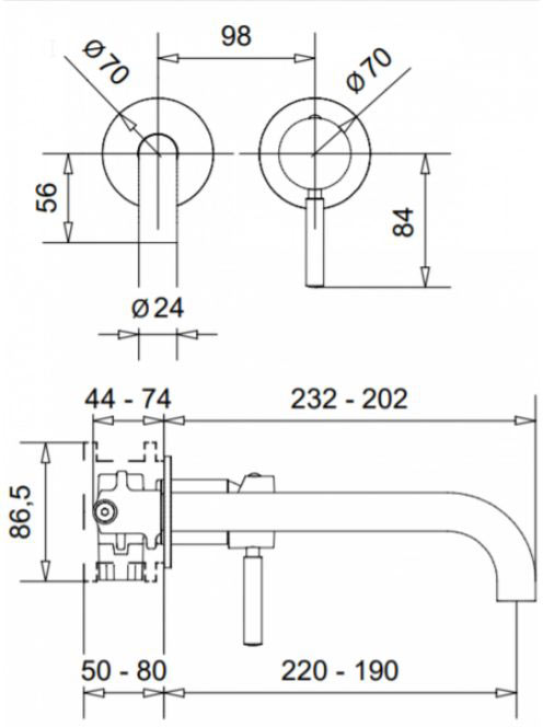 Bugnatese Kobuk falsík alatti 2-lyukas mosdócsaptelep 22 cm-Bugnatese Kobuk falsík alatti 2-lyukas mosdócsaptelep 22 cm-