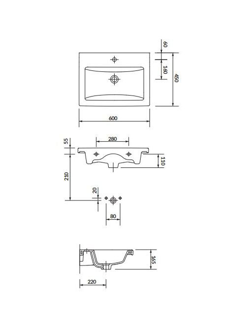 Cersanit Como 60 bútorra szerelhető kerémia mosdó túlfolyóva