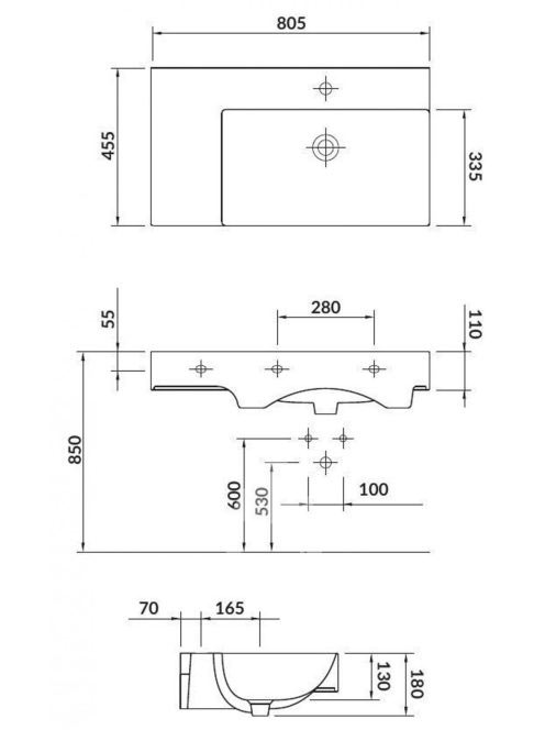 Cersanit Inverto Rocklite 80 szögletes kerámia mosdó, bal ol