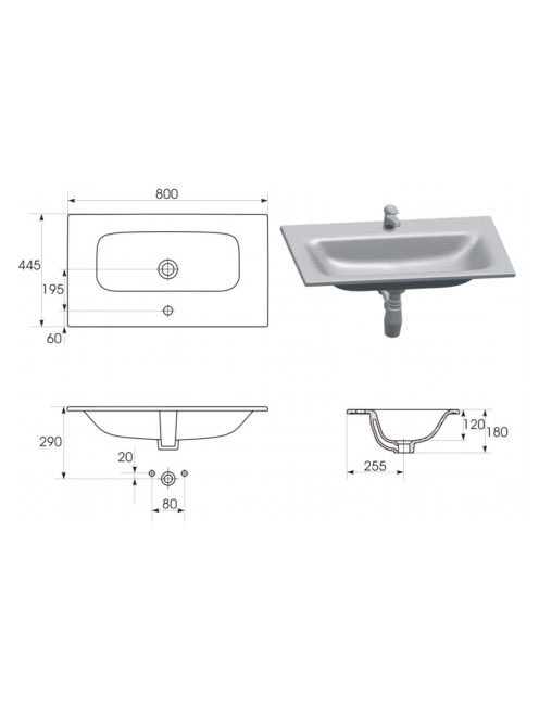 Cersanit Moduo 80cm pultba süllyeszthető mosdó K116-044 - Fü