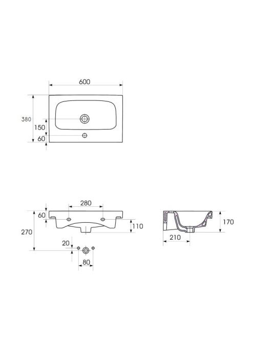Cersanit Moduo Slim 60 cm keskeny mosdó K116-010 - FürdőszobCersanit Moduo Slim 60 cm keskeny mosdó K116-010 - Fürdőszob