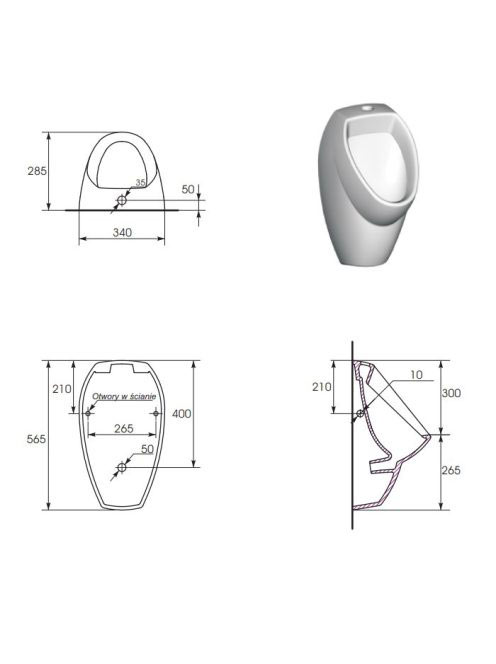 Cersanit Apollo A101 piszoár felső bekötéssel és hátsó kifoyCersanit Apollo A101 piszoár felső bekötéssel és hátsó kifoy