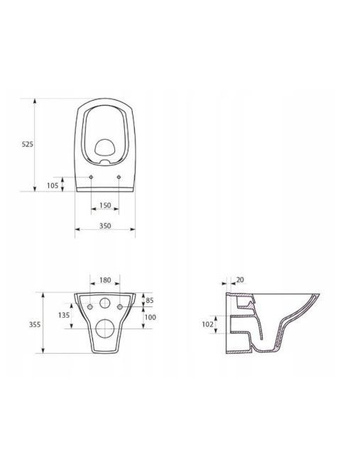 Cersanit Carina CleanOn perem nélküli fali WC, hátsó kifolyáCersanit Carina CleanOn perem nélküli fali WC, hátsó kifolyá