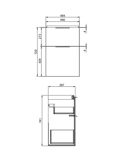 Cersanit City dupla fiókos mosdószekrény 50x40 cm, fényes fe