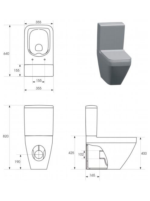 Cersanit Crea szögletes perem nélküli monoblokk WC K114-022