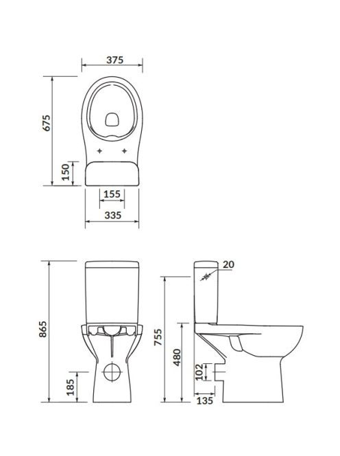 Cersanit Etiuda perem nélküli kompakt WC mozgáskorlátozottak