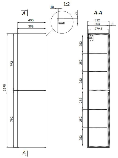 Cersanit Inverto Calacatta 2 ajtós magas szekrény 40x159 cm,Cersanit Inverto Calacatta 2 ajtós magas szekrény 40x159 cm,
