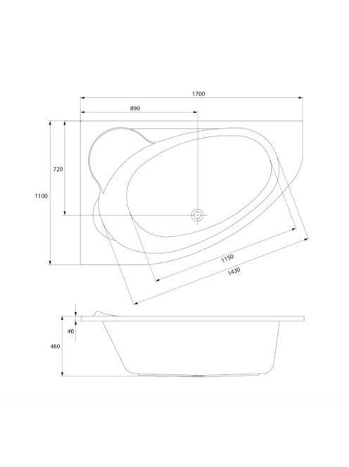 Cersanit Kaliope 170x110 balos aszimmetrikus akril kád S301-