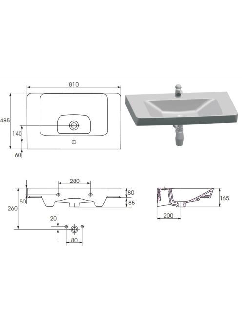 Cersanit Lara 80 alsószekrény Mille kerámia mosdóval, dió S8