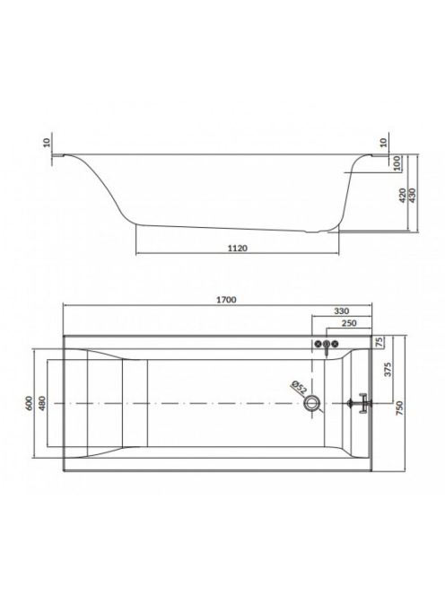 Cersanit Larga 170x75 akril kád lábakkal, fehér S301-303 - F