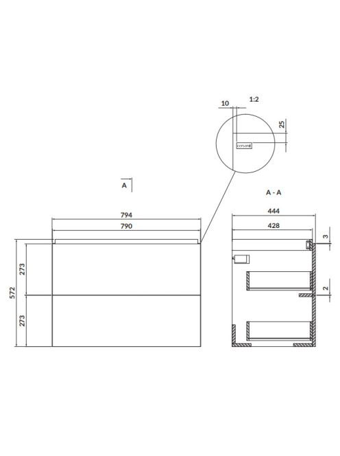 Cersanit Larga alsószekrény mosdó nélkül 79x57x44cm, fehér S