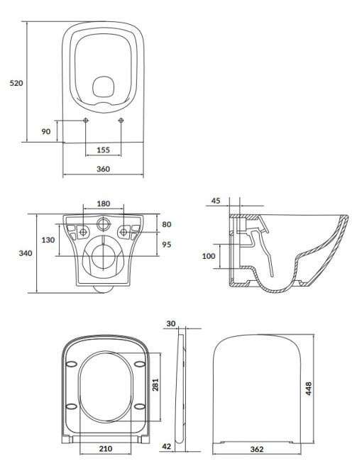 Cersanit Larga perem nélküli fali WC csésze ülőkével, fehér