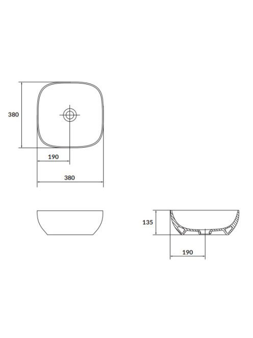 Cersanit Larga ROCKLITE kerámia mosdótál 38x38 cm, túlfolyó