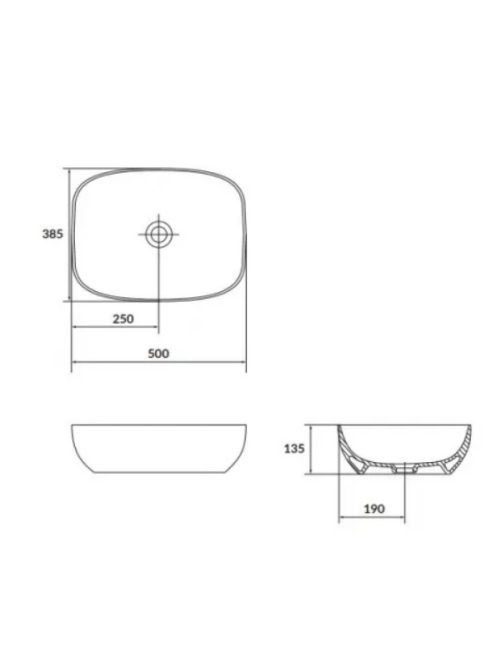 Cersanit Larga ROCKLITE kerámia mosdótál 50x38,5 cm, túlfolyó nélkül, fehér K677-003