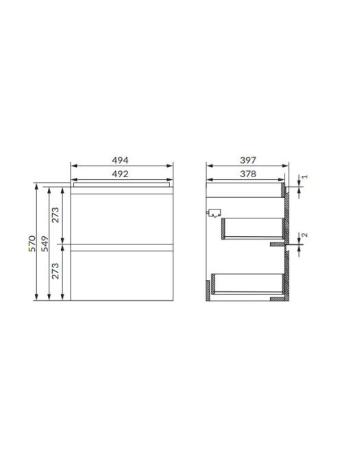 Cersanit Moduo dupla fiókos fali mosdószekrény 60x45 cm, lap