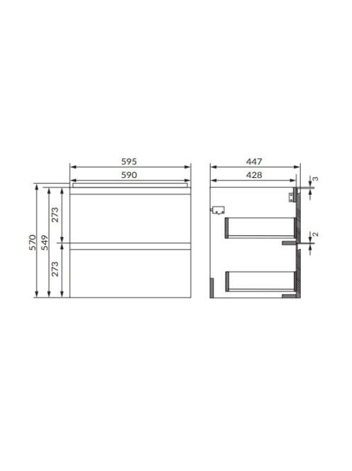 Cersanit Moduo dupla fiókos fali mosdószekrény 60x45 cm, lap