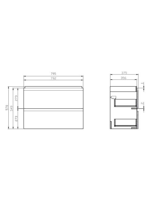 Cersanit Moduo Slim keskeny alsószekrény 80 cm-es mosdóhoz,