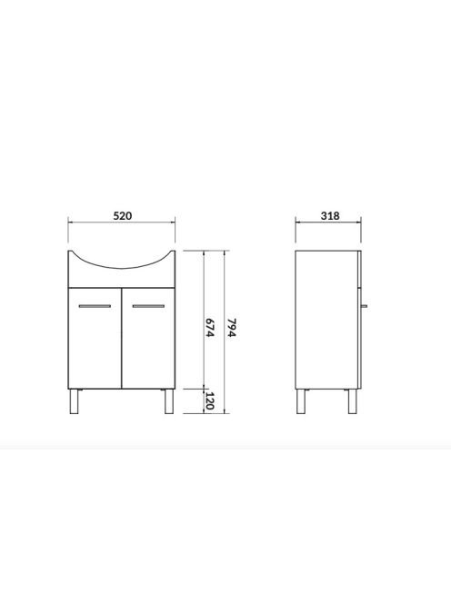 Cersanit Olivia dupla ajtós mosdószekrény 52x79,4 cm, Cersan