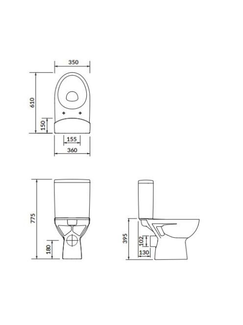 Cersanit Parva Cleanon Perem nélküli kompakt WC csésze hátsó