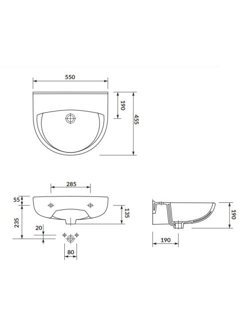 Cersanit President 55 kerámia mosdó csaplyuk nélkül, túlfoly
