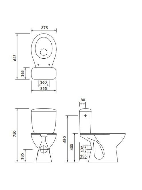 Cersanit President Monoblokkos WC csésze hátsó kifolyással,Cersanit President Monoblokkos WC csésze hátsó kifolyással,