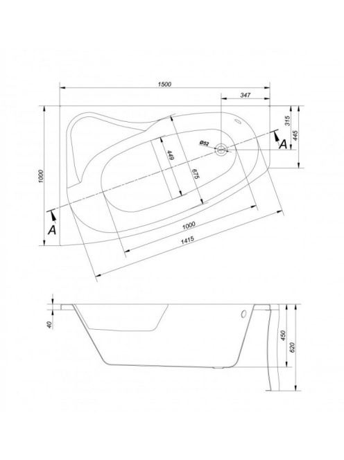 Cersanit Sicilia 150x100 balos aszimmetrikus akril kád S301-