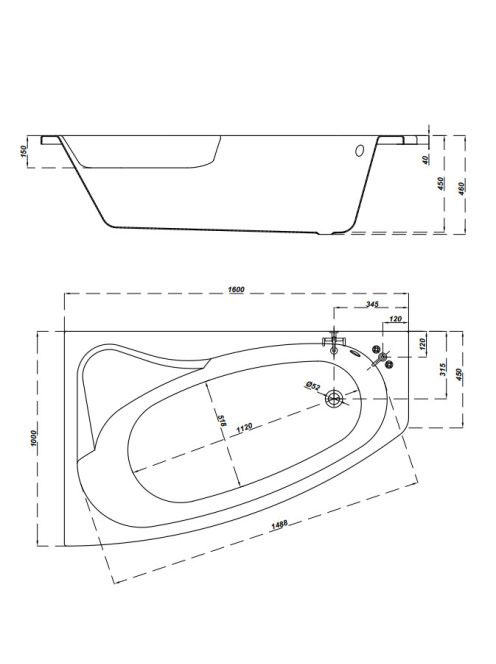 Cersanit Sicilia 160x100 balos aszimmetrikus akril kád S301-Cersanit Sicilia 160x100 balos aszimmetrikus akril kád S301-