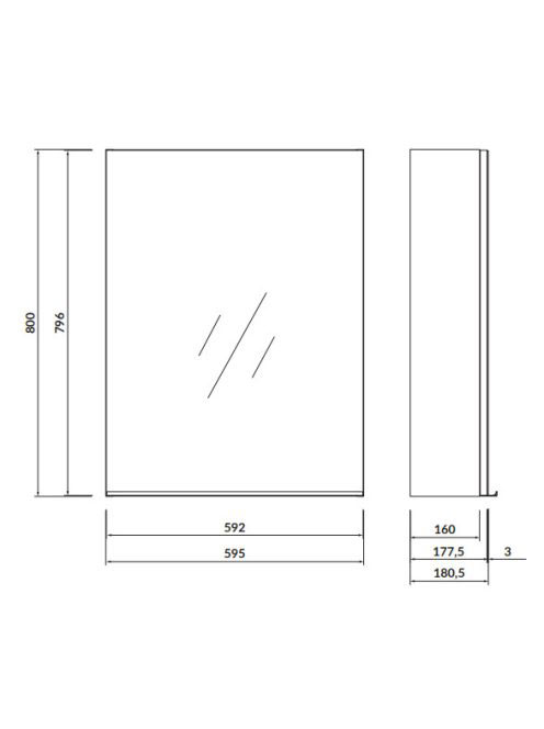 Cersanit Virgo szürkés tölgy tükrös szekrény 60, fekete foga