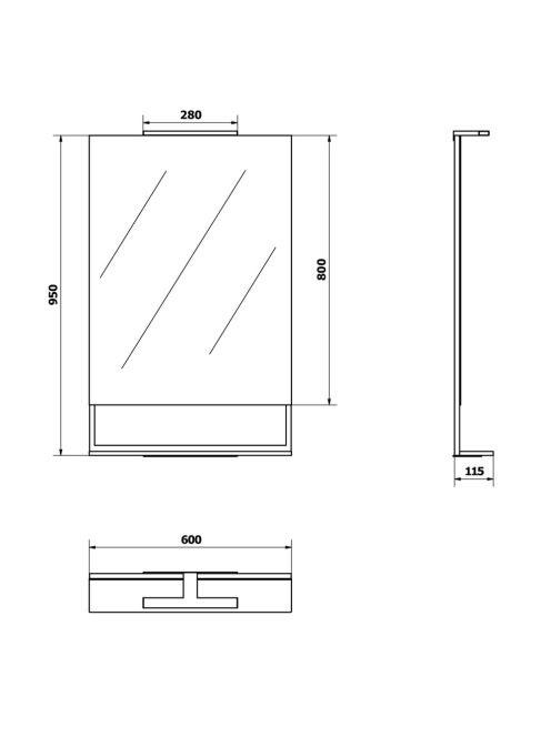Sapho Erupta tükör 60x95 cm, MDF polccal és LED világítással, matt fekete ERU310