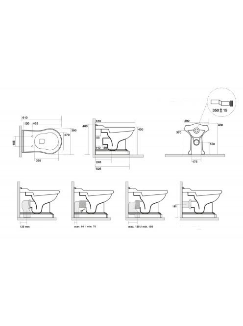 Sapho Kerasan Retro WC csésze alsó/hátsó kifolyású, fehér 10