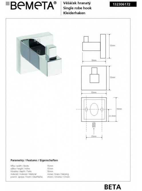 Sapho BETA fogas 55x55x50 mm 132306172 - Fürdőszoba - Fürdős