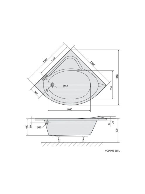 Polysan Sirius sarokkád 130x130 cm, fehér 49111 - Fürdőszoba
