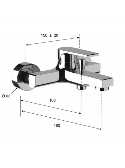 Sapho Kai fali kádtöltő csaptelep, króm KA10