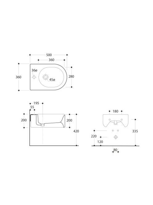 Sapho Kerasan Flo fali bidé 36x20x50 cm, 1 furattal, fehér 3