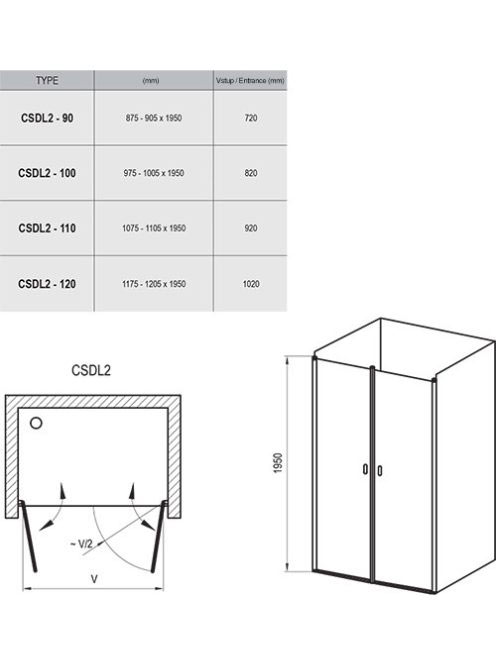 Ravak Chrome CSDL2-120 zuhanyajtó (fehér-transparent) 0QVGC1