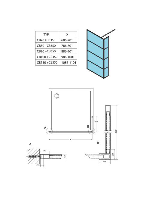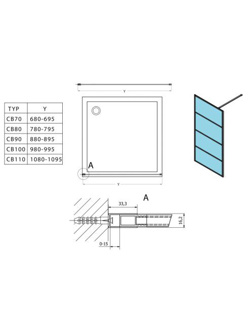Sapho Gelco Cure Black fix zuhanyfal 70 cm, matt fekete CB70