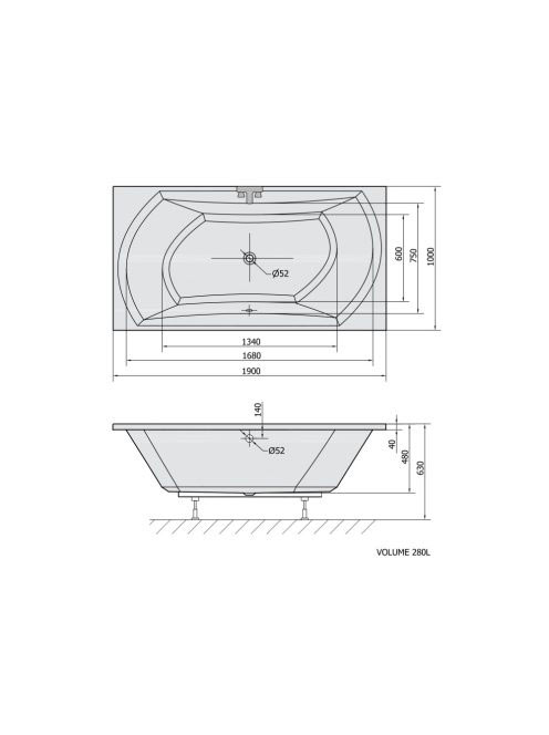 Polysan Salsa akril kád 190x100 cm, fehér 44119 - Fürdőszoba